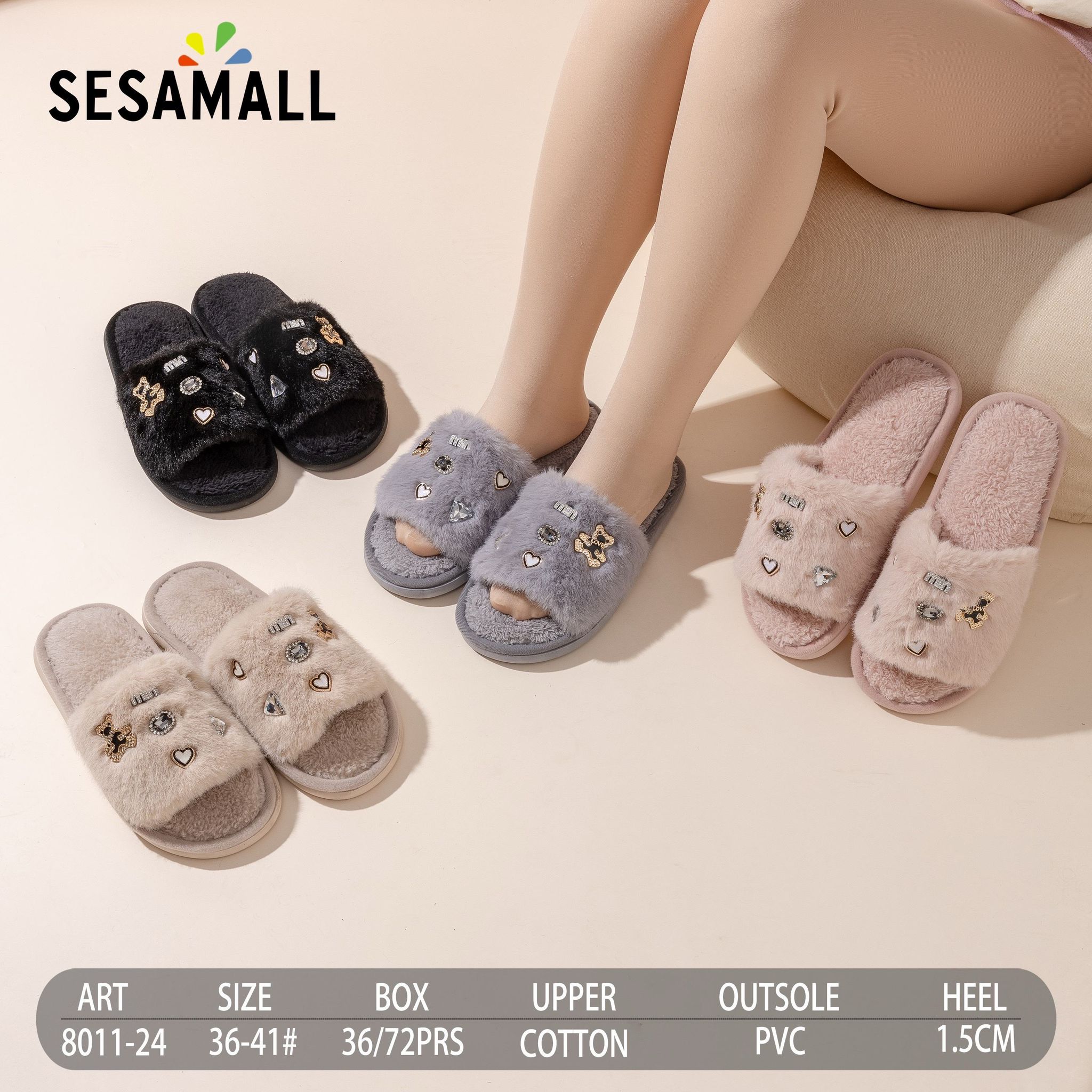 🖤 Zapatillas de Peluche con Detalles Brillantes – Modelo 8011-24